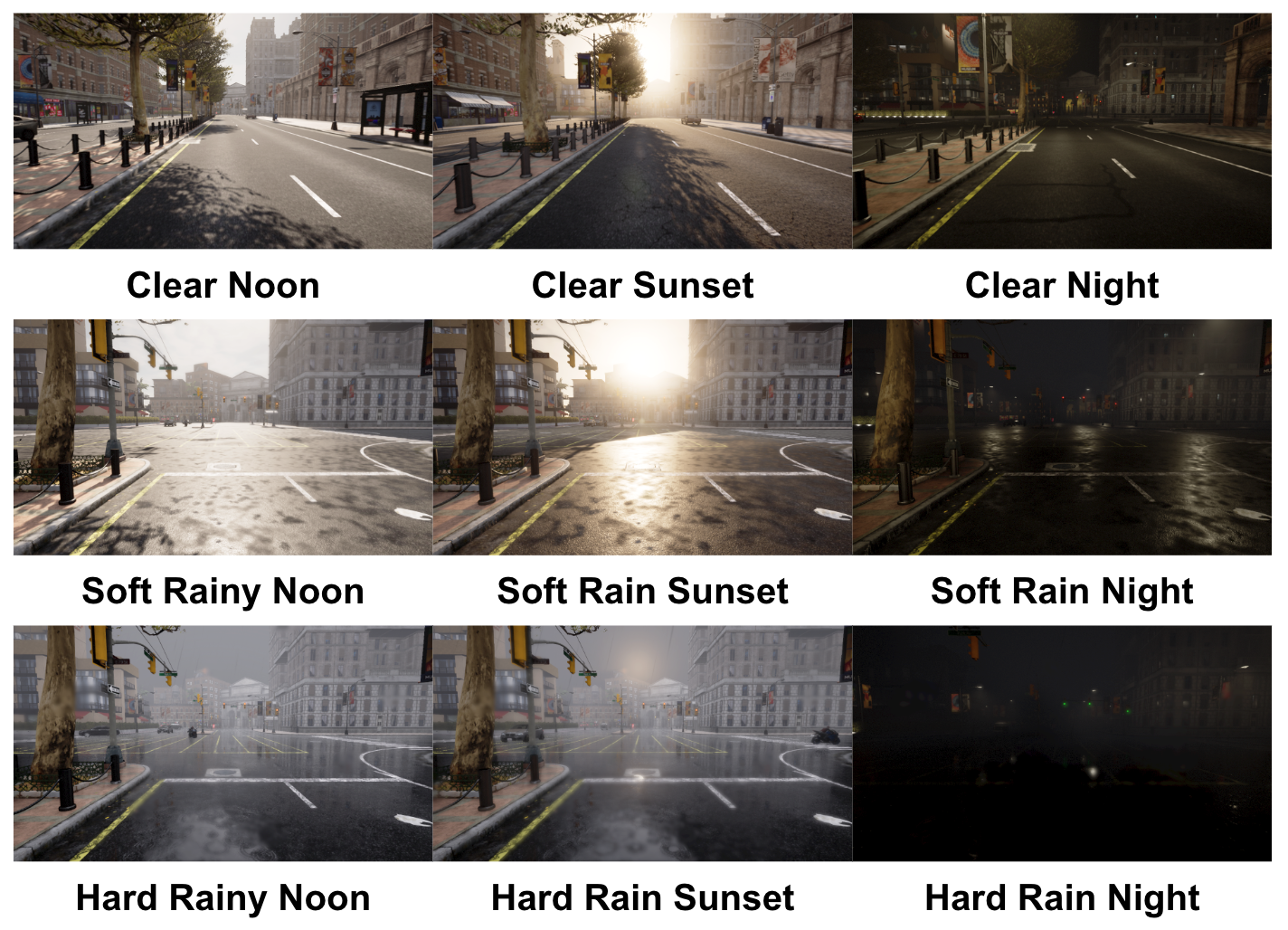 - Built custom CARLA data collection pipeline: ego vehicle + autopilot traffic, 512×512 camera at 1.6m height, 9 weather-time combos (Clear/SoftRain/HardRain × Noon/Sunset/Night), 3,600 annotated frames total